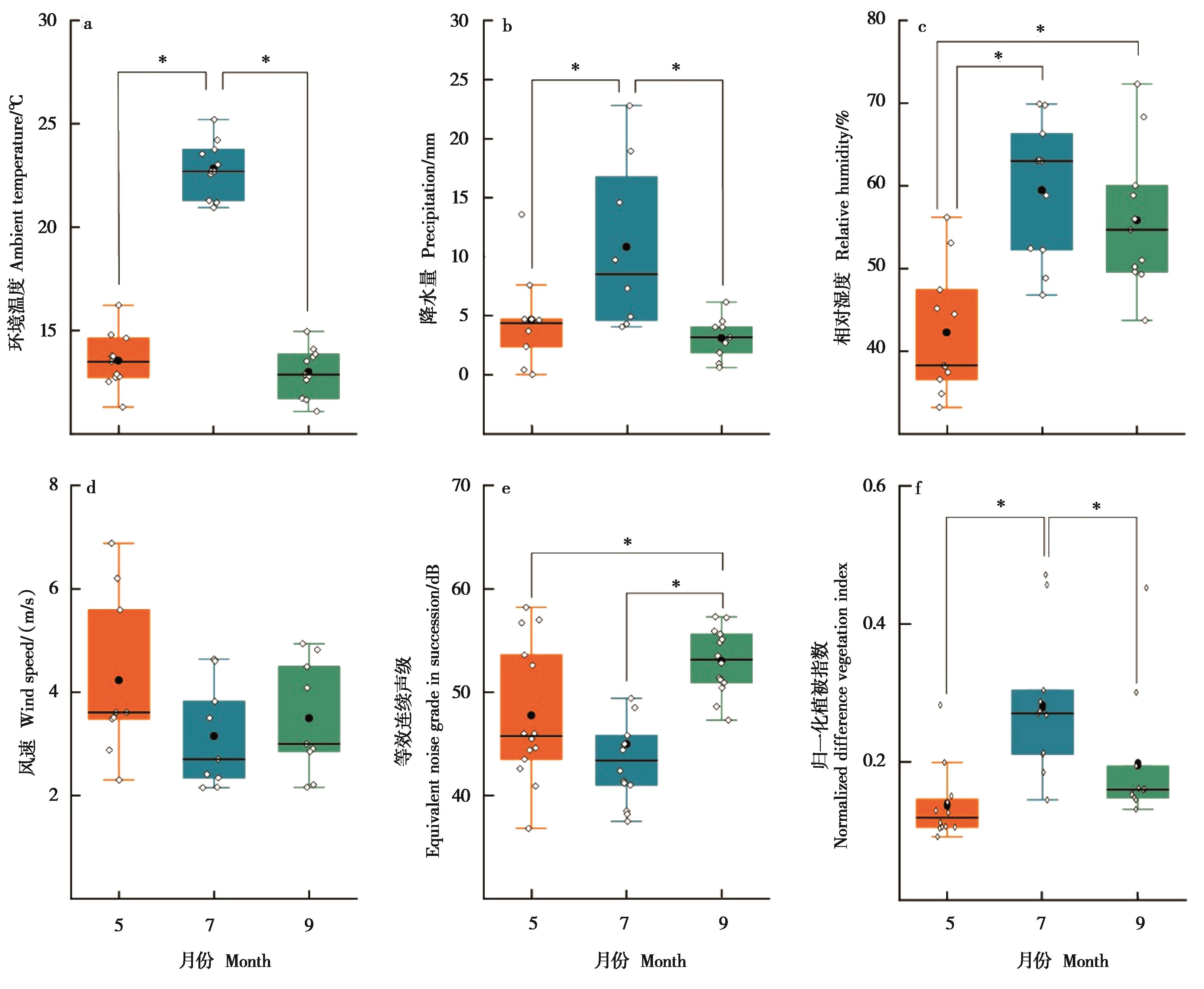 警戒鸣叫是动物重要的生存策略之一,生境植被郁闭度、气候因子、噪声和鸣叫功能等可能对动物鸣叫适应性调整发挥作用,动物警戒鸣声如何适应栖息地结构的时序变化是一个有待探究的问题。其中声音适应性假说认为动物的鸣声信号应该朝有利于在其所处环境中高效传播的方向进化,然而并非所有研究支持其预测。布氏田鼠 (Lasiopodomys brandtii) 的警戒鸣叫是其重要的反捕食行为,为检测其警戒鸣叫的声学特征和功能适应性,本研究于2023年5月、7月和9月在内蒙古新巴尔虎右旗典型草原区,采集布氏田鼠的警戒鸣叫,并结合当地历年气候参数和实时环境噪声指标,分析其警戒鸣叫特征与生境间的关系。结果发现布氏田鼠警戒鸣叫具有单音节 (占比13.1%) 和多音节 (占比86.9%) 的声学特征,且多音节鸣叫的最小基频或最大基频与生境植被指数或环境相对湿度呈显著正相关,但与风速呈显著负相关,最大基频和基频范围与环境噪声呈显著正相关,但最小基频等其他频域参数以及音节间隔与之呈负相关。夏季 (7月) 相对高温多雨、低噪声的环境条件下,布氏田鼠警戒鸣声表现为音频相对集中的长脉冲、音节松散的高频音;而在相对干燥、风急嘈杂的春季 (5月) 和秋季 (9月),尤其是9月,鸣声调整为短脉冲、音节密集的宽带低频音,布氏田鼠警戒鸣声响应了相对湿度、风速和噪声等非植被郁闭度的季节性变化,但不支持声音适应性假说,这种差异也是其权衡反捕食风险和收益的结果,与其幼仔或家族亲缘个体扩散紧密关联。本研究为布氏田鼠适应集群和季节性繁殖生活相关的反捕食声讯对策提供了依据。